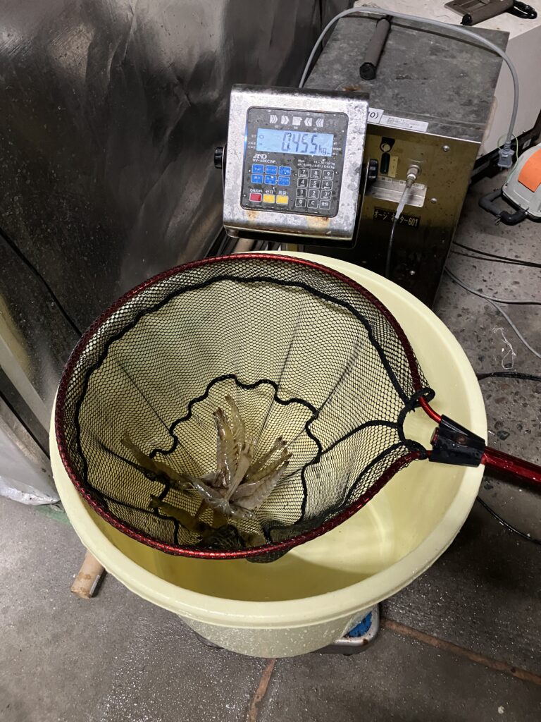 えび釣りを楽しんだ後は、氷水で軽く締めて(仮死状態にし)